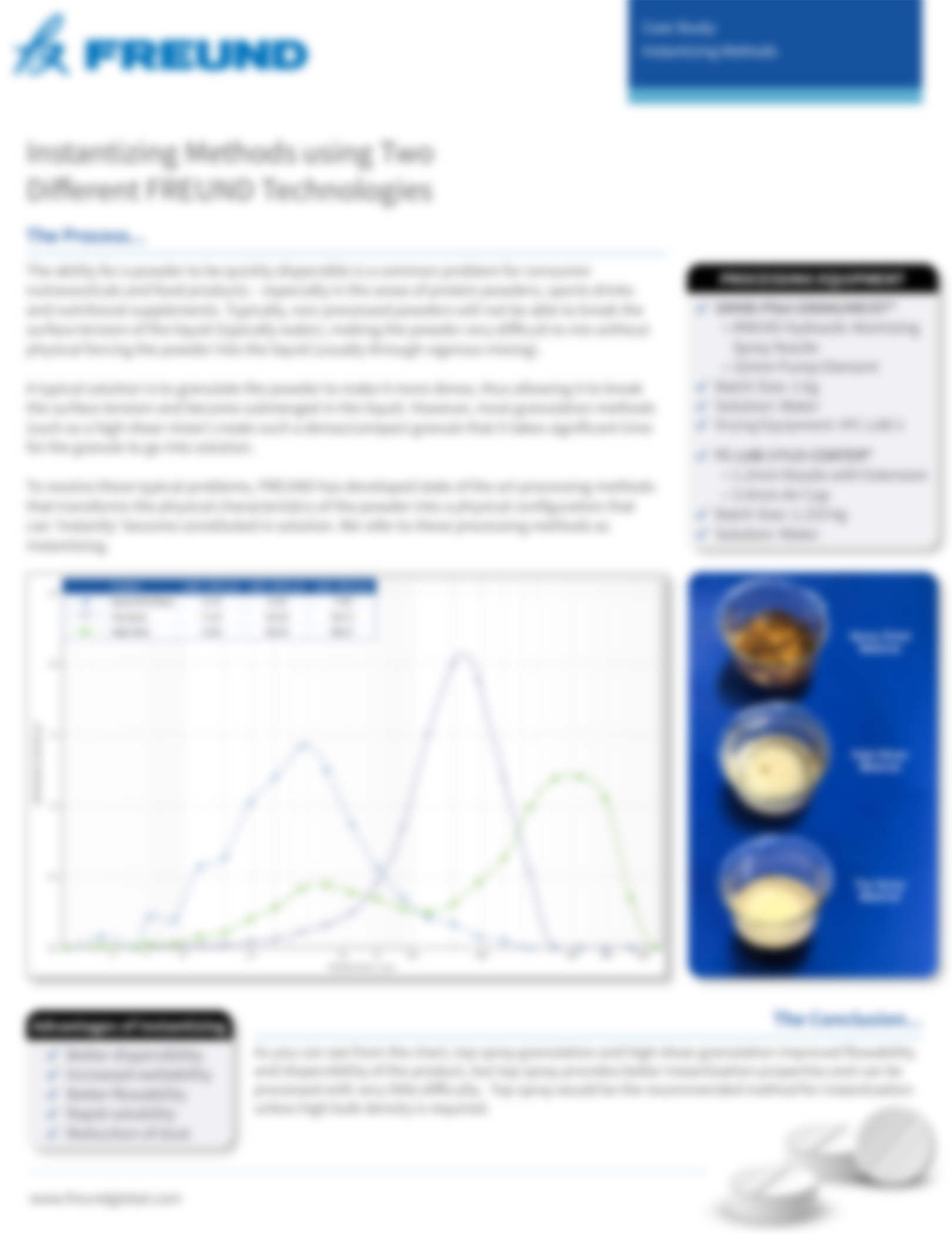 The ability for a powder to be quickly dispersible is a common problem for consumer nutraceuticals and food products – especially in the areas of protein powders, sports drinks and nutritional supplements. Typically, non-processed powders will not be able to break the surface tension of the liquid (typically water), making the powder very difficult to mix without physical forcing the powder into the liquid (usually through vigorous mixing).