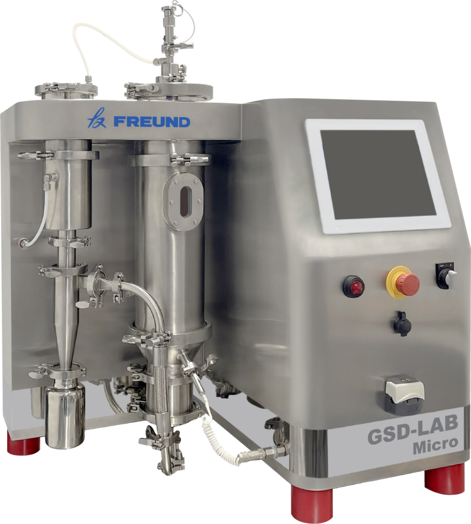 Spray drying is a method for producing a dry powder directly from a solution or slurry. In a continuous process, the liquid feedstock is dispersed as a mist of fine droplets into a stream of hot drying gas, all within a cylindrical drying chamber. In aqueous processes, the drying gas is typically air. For solutions composed of flammable solvents such as ethanol and acetone, the inert drying gas is nitrogen and the system operated in a closed cycle as illustrated below. In addition, an inert closed cycle is also useful for drying chemical and biologic materials that are sensitive to oxygen. Because the kinetics of drying are so rapid, materials are dried in a fraction of a second which helps to make the process viable for thermal sensitive materials such as foods, extracts and other organic substances.